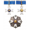 Grand Officer's Set, 2nd Class, instituted in 1963. Neck Badge, gilt Silver, 70x62 mm, enameled, original suspension loop and ribbon. Breast Star, 78 mm, gilt Silver with smooth rays, superimposed parts silver gilt, maker's mark "H. Stern", enameled, reverse with long vertical tapered pin. I