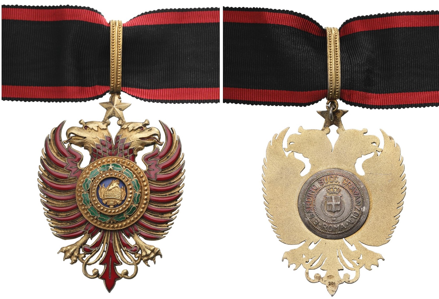 Commander's Cross, instituted in 1925: Neck Badge, 74x54 mm, gilt Silver, maker's mark "Gardino - Roma", one-side enameled, suspension ring and short ribbon. A beautiful badge, in excellent condition. I