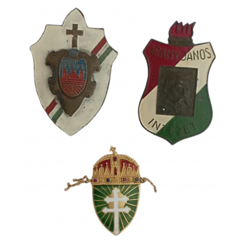 SKU: 850 The Live Auction begins in: Click here to register for the live Auction Starting price 60 EUR Log in to place a bid. Total bids: 0HUNGARYBreast Badges, 34x21 mm., 48x33 mm., 47x28 mm., gilt Bronze and Bronze, one with red and blue Jewels, suspension pin and clasps on reverse. Interesting lot !-II (3) Shop ID: DM 133Auction LXX - Day 1