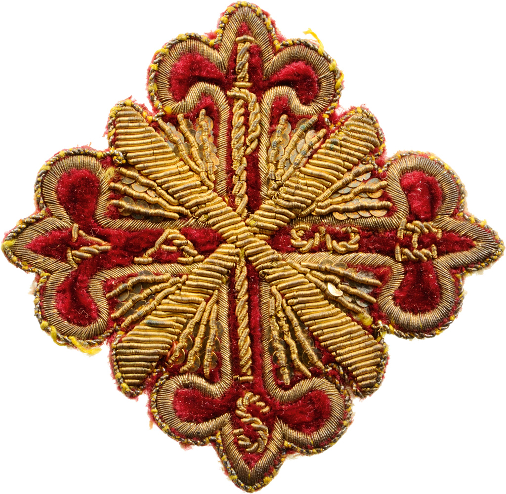 Cloth Breast Star, instituted during the 16th Century. Breast Star in velvet, 59 mm, GOLD and silver bullion, reverse backed with white velum. Some signs of wear. Rare and attractive early 19th Century star! I R!