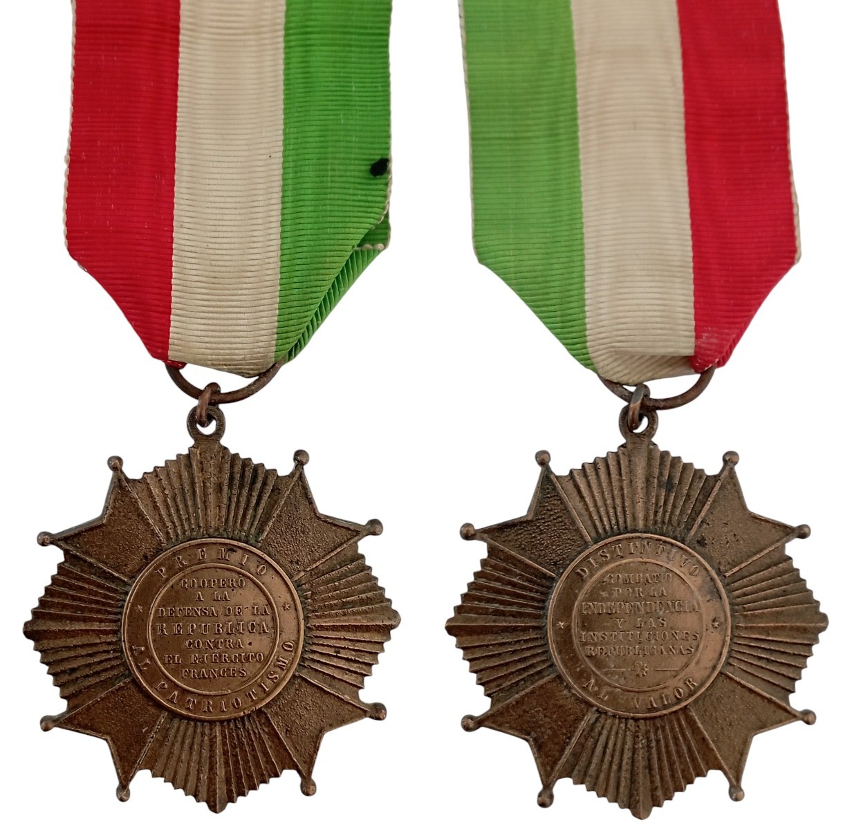 SKU: 1029 Auction has finished. Total bids: 1MEXICO3rd Class, instituted in 1867. Breast Badge, 48x47 mm., Bronze, original suspension ring and ribbon.Extremely fine condition! I Shop ID: NEXT 76