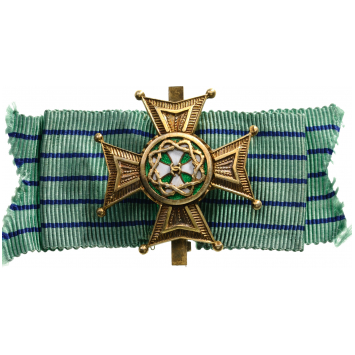 3rd Class for Ladies by "Da Costa, Lisboa". Breast Badge,, 38 mm gilt Metal, medallion enameled, with pin on reverse and original ribbon. Very rare order of the period of exile of King Carol II, in superb condition. I RR!