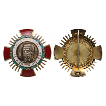 Grand Cross Star, Special Class in Diamonds, instituted in 1949. Breast Star, gilt Silver, hallmarked "925/1000", maker`s mark "Zuloeta S.A.", 11 brilliants, superimposed parts enameled, large pin on reverse. A very rare class in extremely fine condition! Dim.: 77, 0 mm. I RR!