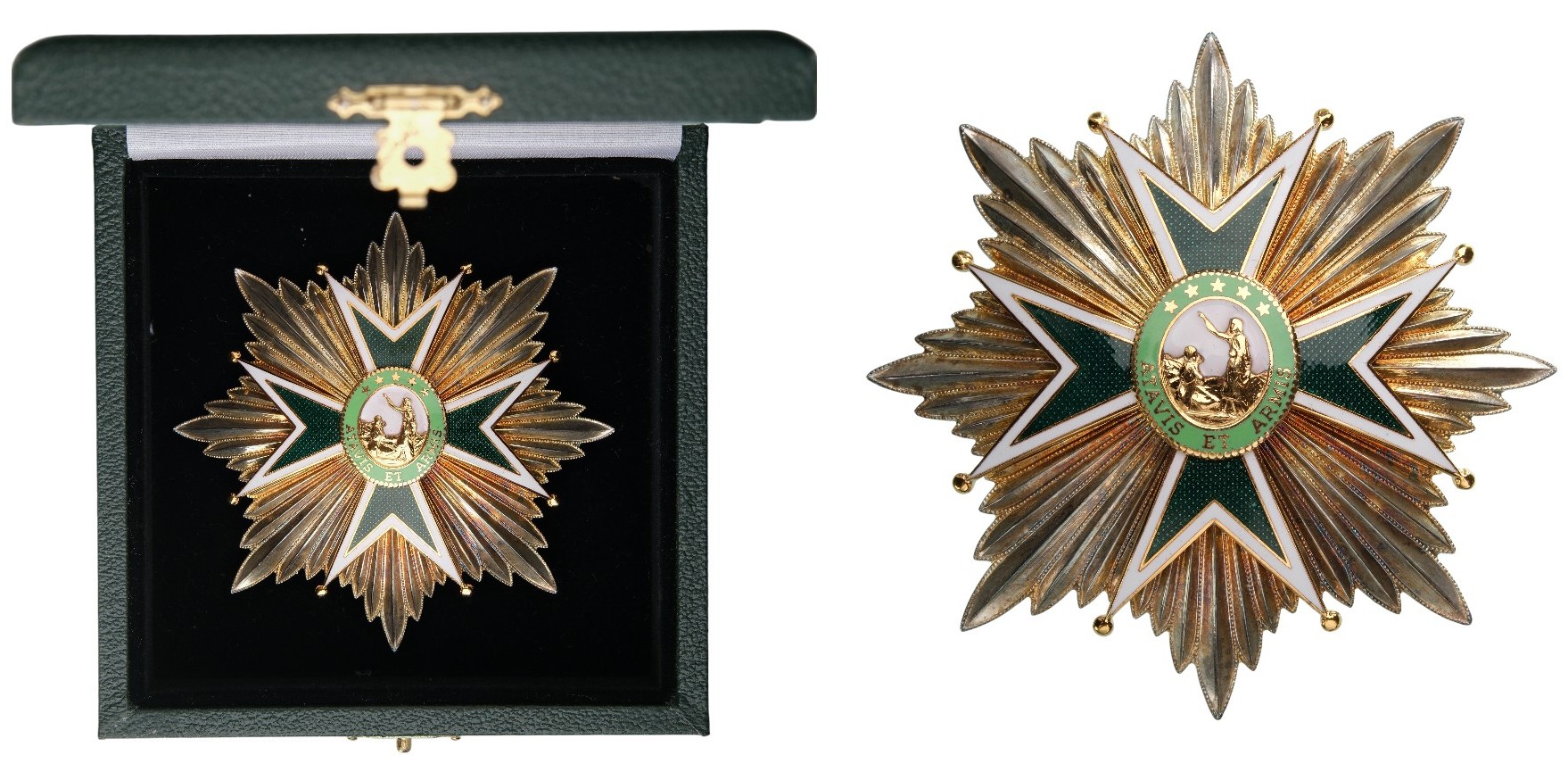 Grand Officer's Star. Breast Star, 86 mm, Silver, enameled, vertical pin on the reverse, in original case of issue by "Toye, Kenning & Spencer Limited - London". A beautiful star, in mint condition! I