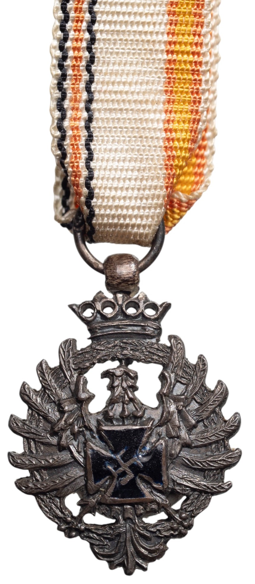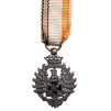 Miniature, instituted in 1943. Breast Badge, 20x15 mm, silvered Bronze, center enameled, original suspension ring and ribbon. A rare miniature, in extremely fine condition! I R!