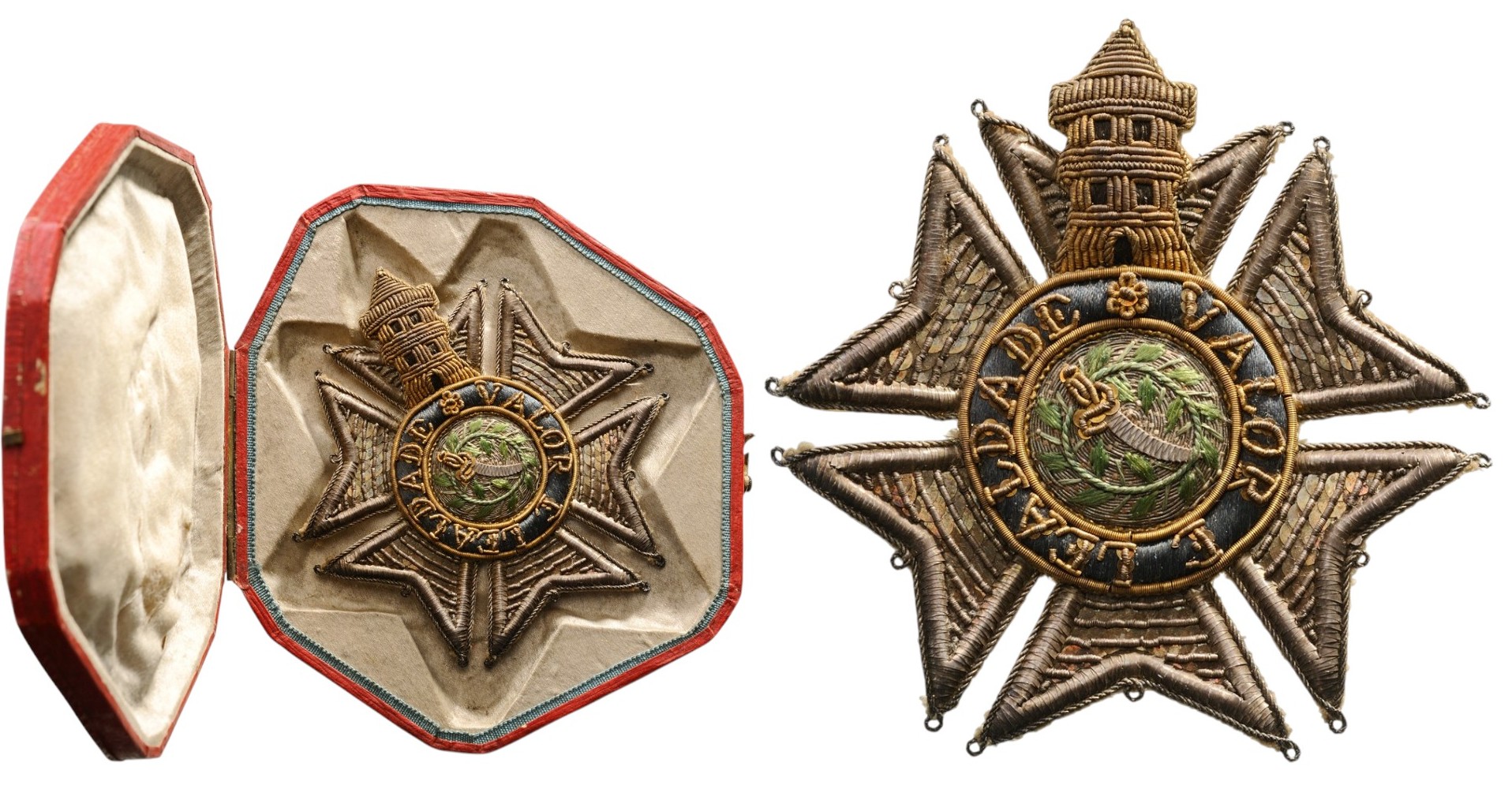 An extremely rare star of the highest military order of Portugal, in the even rarer 1st type. In our opinion, this piece can be dated to the period of the Napoleonic wars. This star was published and illustrated in: P.J. Estrela: “Ordens e Condecorações Portuguesas 1793-1824”, page 45, where it was possibly attributed to the workshop of F. Alves Pereira, tailor and embroidered to the Royal Family of Portugal, I RR!