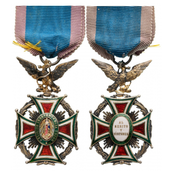 Knight's Cross Civil, 5th Class, instituted in 1821. Breast Badge, 60x35 mm., Silver, both sides enameled, original suspension eagle, ring and ribbon. A superb order, in extremely fine condition! I-