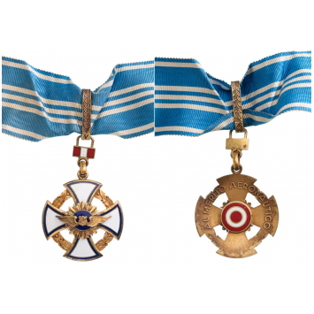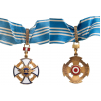 Commander's Cross, 3rd Class, instituted in 1946. Neck Badge, 66x4 mm, gilt Silver, both sides enameled, both central medallions gilt Silver, enameled, original suspension loop ornamented and enameled and long ribbon. Extremely fine condition! I