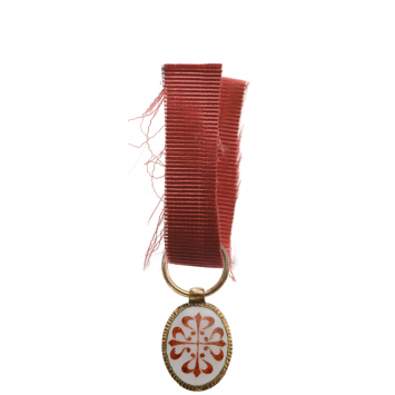 Miniature, 13x9 mm., GOLD, of oval form, white enameled, obverse bearing the Order’s cross of translucent, red enamel, chiseled, golden border, concave, polished border, with cylindical suspension loop and round, ribbon ring. A beautiful miniature, that can be dated to the first decade of 19th Century, excellent condition. I R!