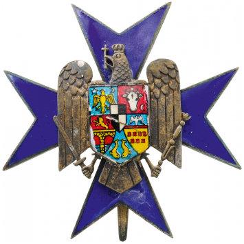 2nd Class. Breast Star, 54 mm in silvered Bronze, one side blue enameled cross with enameled weapon in the centre. Large pin on the back, dark patina. The order was awarded for bravery and devotion in the ranks of the Civil Guard. Very rare! I- RR!