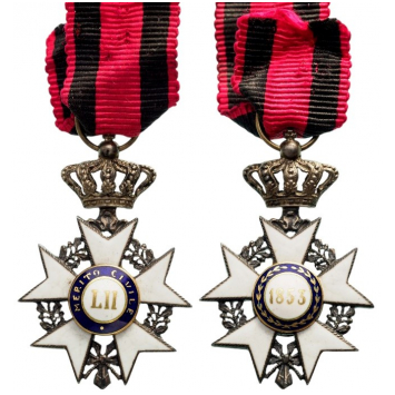 Knight's Cross, instituted in 1853. Breast Badge, 27x20 mm., Silver, both sides enameled, original suspension crown, ring and ribbon. A superb and rare large miniature, in mint condition! I R!