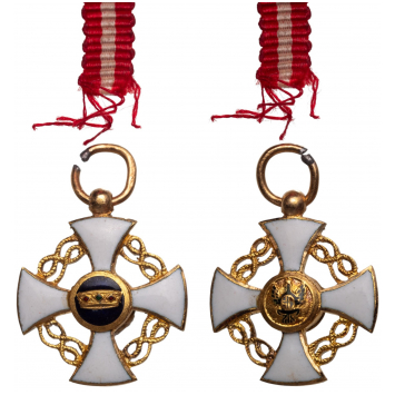 SKU: 947 The Live Auction begins in: Click here to register for the live Auction Starting price 50 EUR Log in to place a bid. Total bids: 0ITALYOfficer's Cross Miniature, instituted in 1861. Breast Badge, 14x12 mm., GOLD, original suspension ring and ribbon. Mint stateI I Shop ID: NEXT 196Auction LXX - Day 2