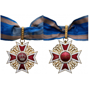 SKU: 1188 The Live Auction begins in: Click here to register for the live Auction Starting price 200 EUR Log in to place a bid. Total bids: 0ROMANIACommander's Cross 1st Type, Civil. Neck Badge, 60 mm., gilt Bronze, both sides enameled, original ornamented suspension loop and ribbon. A superb French manufacture, in extremely fine condition! I Shop ID: 95Auction LXX - Day 2