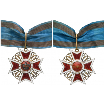 SKU: 1187 The Live Auction begins in: Click here to register for the live Auction Starting price 200 EUR Log in to place a bid. Total bids: 0ROMANIACommander's Cross 1st Type, Civil. Neck Badge, 60 mm, gilt Silver, both sides enameled, original suspension loop and ribbon, in extremely fine condition! I Shop ID: 57.04.66Auction LXX - Day 2