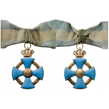 Commander`s Cross, for Civil. Neck Badge, 68x50 mm., gilt Silver, concave cross, hallmarked "267-35", maker`s mark "HW (Heinrich Weiss)", concave light blue enamel on both sides and laurel wreaths between the limbs, with large original ribbon. Very rare, high quality order! I RR!