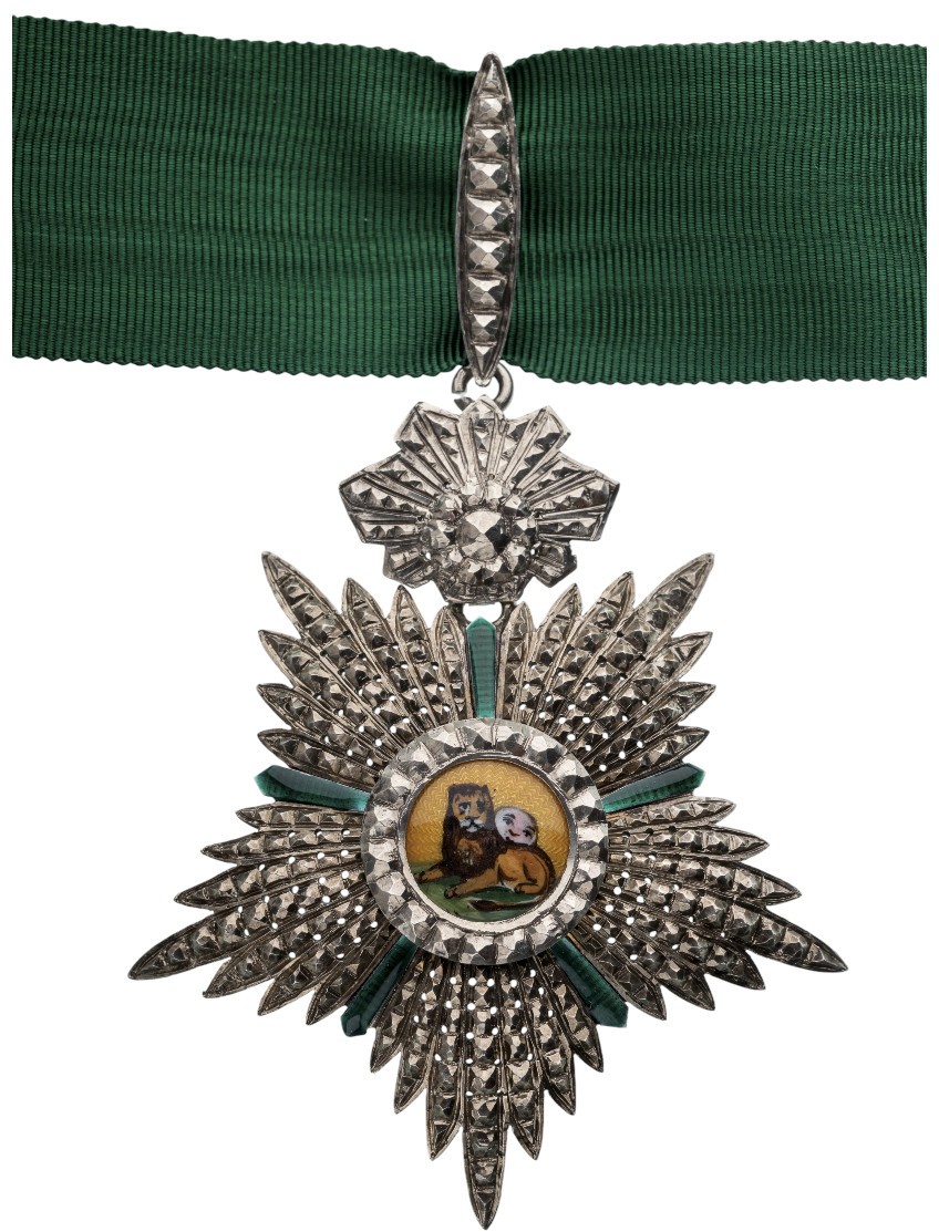 SKU: 886 The Live Auction begins in: Click here to register for the live Auction Starting price 300 EUR Log in to place a bid. Total bids: 1IRAN - PERSIACommander's Cross, instituted in 1808. Neck Badge, 74x63 mm, Silver, enameled, suspension device and ring, ribbon. A badge, in extremely fine condition. I Shop ID: GUN 18Auction LXX - Day 2