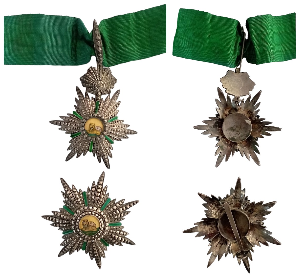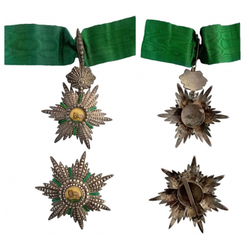 Grand Officer's Set, 2nd Class, instituted in 1808. Neck Badge, 81x70 mm, Silver, centre medallion enameled, original suspension loop and ribbon. Breast Star, 78 mm, Silver, centre medallion enamelled, on reverse large pin. A set in extremely fine condition! I