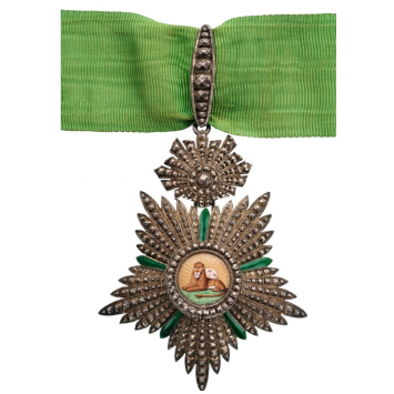 SKU: 883 The Live Auction begins in: Click here to register for the live Auction Starting price 300 EUR Log in to place a bid. Total bids: 1IRAN - PERSIACommander's Cross, instituted in 1808. Neck Badge, 80x62 mm, Silver, enameled, suspension device and ring, ribbon. A rare and superb, old European made badge, in extremely fine condition. I R! Shop ID: NEXT 51Auction LXX - Day 2