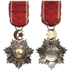 Officer's Cross, 4th Class. Breast Badge, 70x55 mm, GOLD and Silver, Turkish hallmarked, chiseled and pierced silver with gold centre medallion also with the Sultan`s Tughra, with enameled, original gilt suspension crescent, ring and faded ribbon. A superb badge, in extremely fine condition! I-