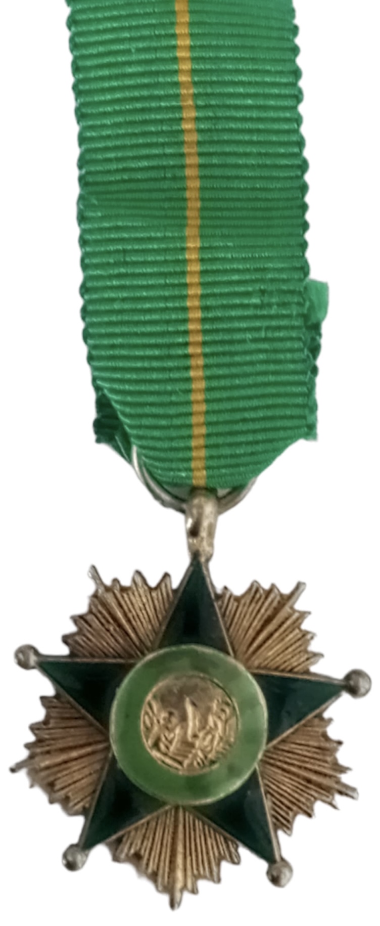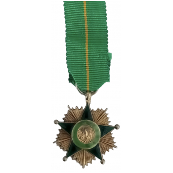 Officer’s Cross Miniature, 4th Class, instituted in 1960. Breast Badge, 21x18 mm, gilt Silver, original suspension ring and ribbon. A very attractive unusual model with different central representation! I RR!