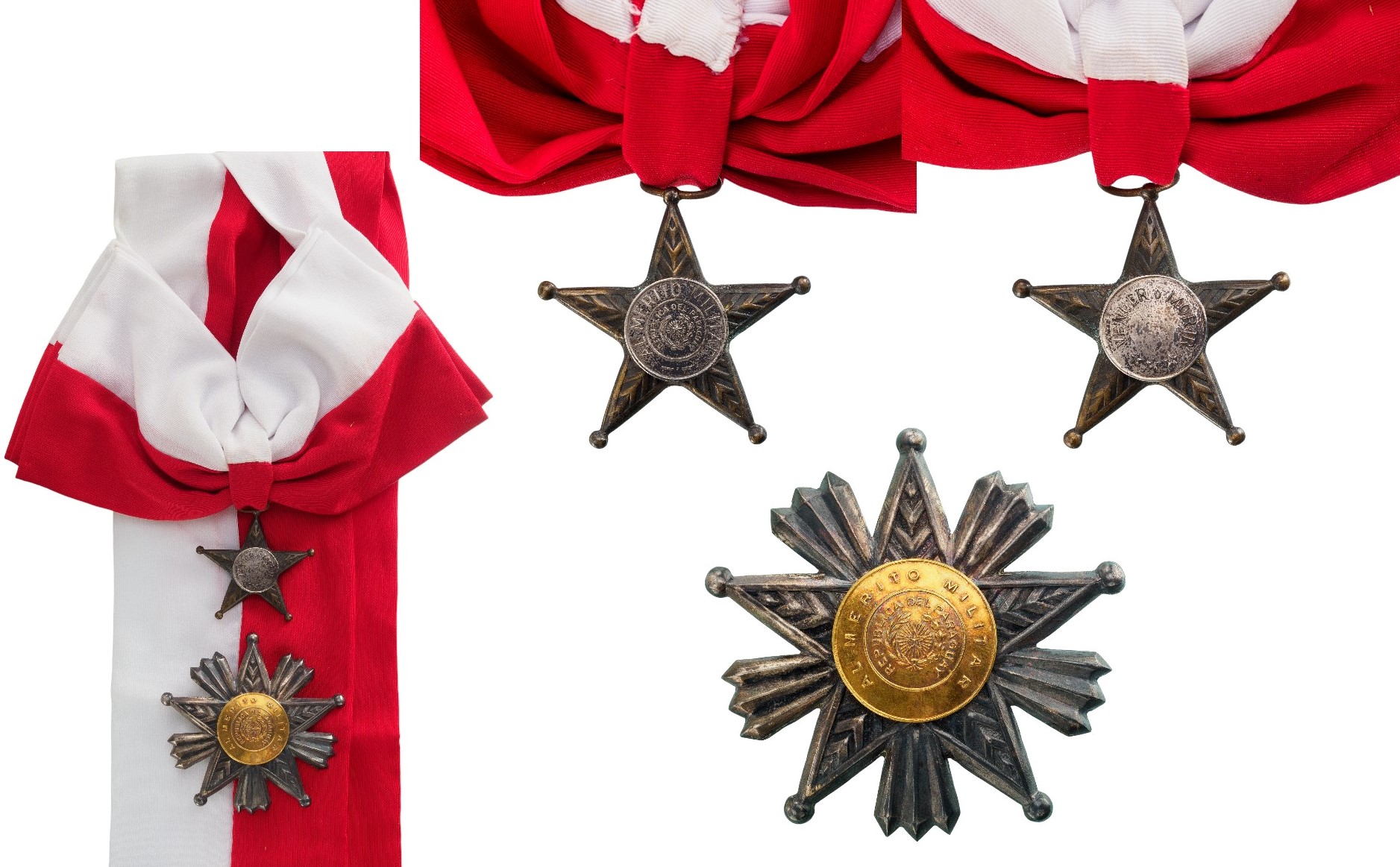 Grand Cross Set, instituted in 1957. Sash Badge, 49 mm, Silver, original suspension device and sash. Breast Star, 74 mm, partially gilt and Silver, horizontal thin pin on the back. A rare set in extremely fine condition! I R!
