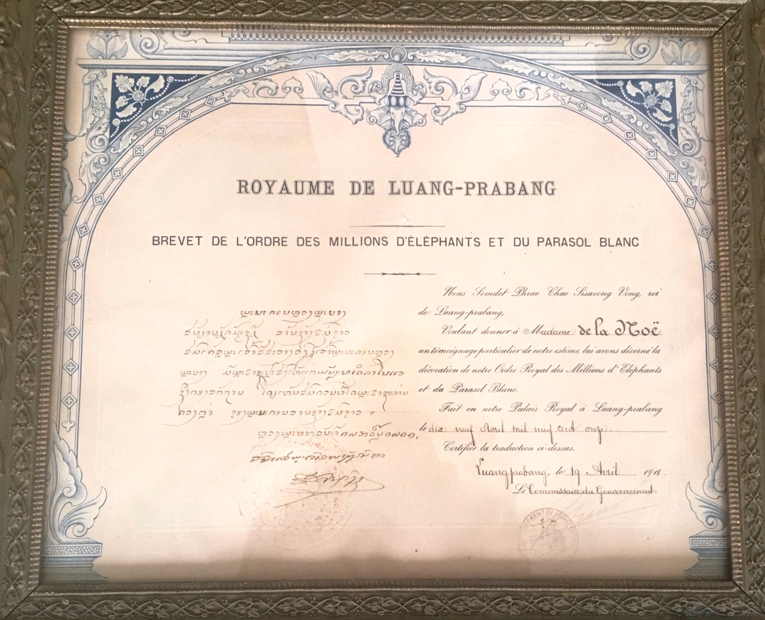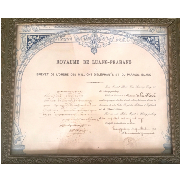 SKU: 989 The Live Auction begins in: Click here to register for the live Auction Starting price 40 EUR Log in to place a bid. Total bids: 0LAOSKnight's Cross Awarding Document, 5th Class, instituted in 1909. Document, to a French noble Lady, dated 19th of April 1911, in Luang-Prabang. A very attractive, in superb wooden frame! R! I Shop ID: 61465Auction LXX - Day 2