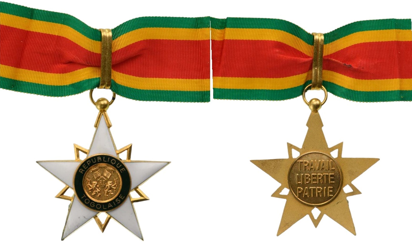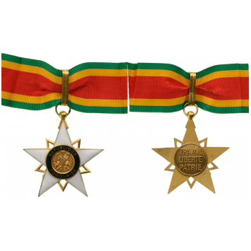 Commander's Cross, instituted in 1961. Neck Badge, 63x58 mm, gilt Bronze, maker's mark "A. B. - Arthus Bertrand - Paris", one side enameled, original suspension ring and long complete ribbon. A superb badge, in mint condition! I