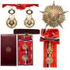 Grand Cross Set, instituted in 1825. Sash Badge, 99x60 mm, gilt Bronze, both sides enameled, with laurel wreath suspension device, original ring and complete sash with bow. Breast Star, 80 mm, Silver, large vertical pin on the back and two side hooks. In original case of issue, inner fitting missing, with lapel hole rosette, with gilt weapon on the lid. A rare set in perfect condition! I R!
