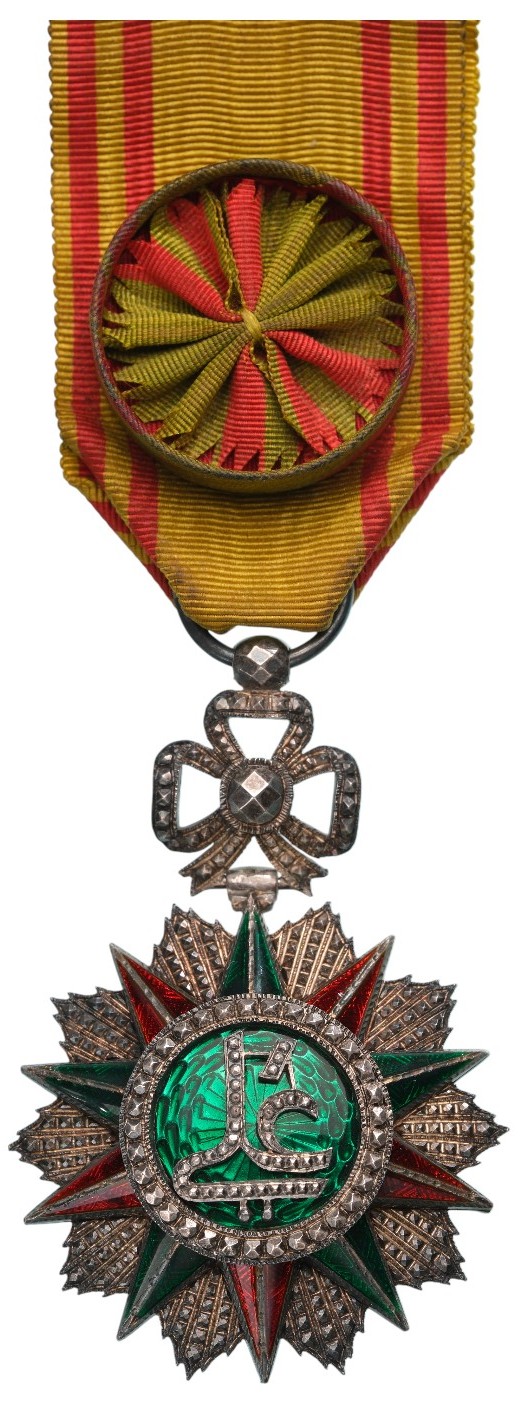 Officer's Cross, 4th Class, Ali Bey (1882 - 1902). Breast Badge, 65x44 mm, Silver, partially enameled, original suspension ring and ribbon with rosette. A splendid luxury jeweller's quality, in mint condition. I R!