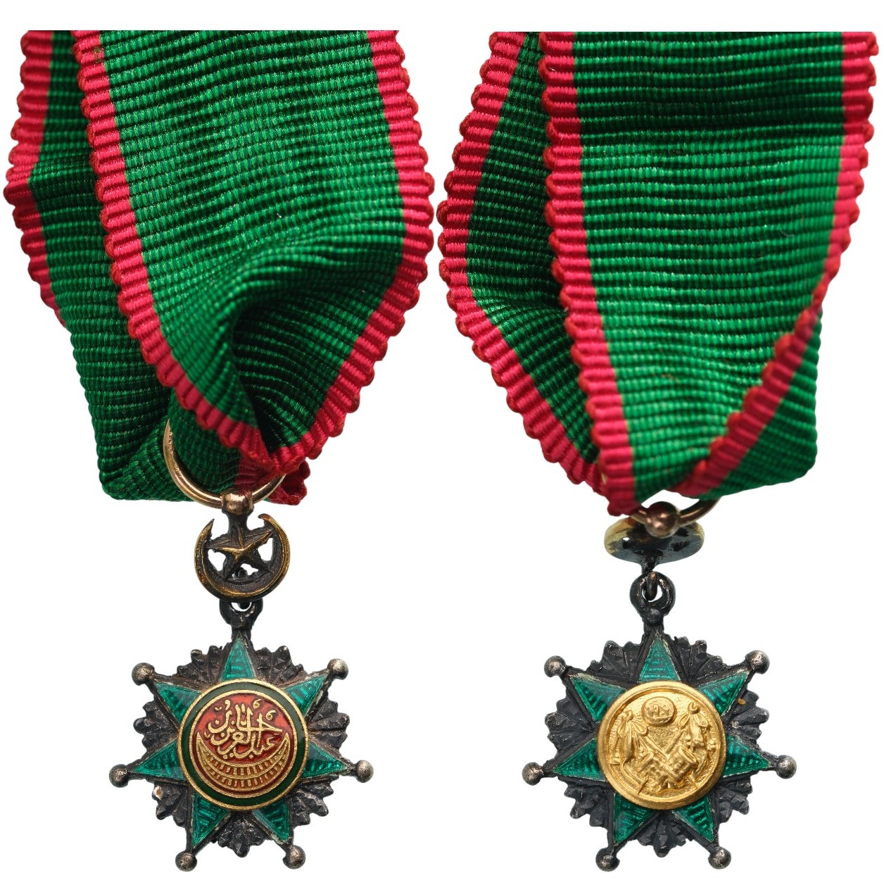 SKU: 1646 The Live Auction begins in: Click here to register for the live Auction Starting price 200 EUR Log in to place a bid. Total bids: 0TURKEYMiniature, instituted in 1862. Breast Badge, 17x12 mm, GOLD and Silver, both sides enameled, original suspension crescent, ring and ribbon. A superb miniature, in extremely fine condition! I Shop ID: NEXT 216Auction LXX - Day 2