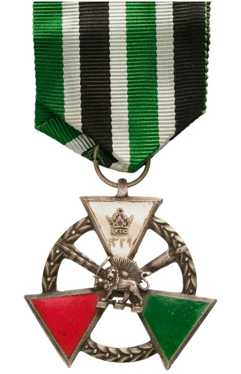 SKU: 902 The Live Auction begins in: Click here to register for the live Auction Starting price 180 EUR Log in to place a bid. Total bids: 0IRAN - PERSIABreast Badge, 44 mm, Silver, multipart constrution, one-side enameled, original suspension ring and ribbon. Very attractive and scarce! I- R! Shop ID: DV8Auction LXX - Day 2