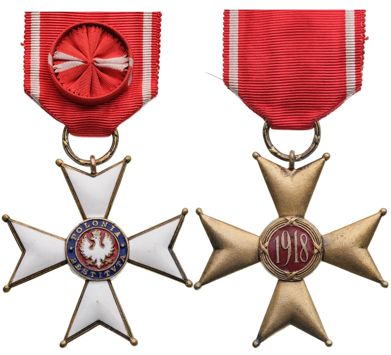 Officer's Cross, 4th Class, 1st Model (1918). Breast Badge, 52x51 mm, gilt Silver, both sides enameled, original suspension ring and ribbon with rosette. A superb cross of very large size, possible commander's cross, mounted to be worn on the breast, in best condition! I