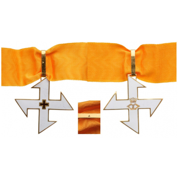 Commander`s Cross, 1st Class, 1st Model. Neck Badge, 53x51,0 mm., gilt Silver, hallmarked "crown"on obverse the small red cross, on reverse the cipher of Queen Maria, original ribbon. Instituted by King Ferdinand 17th of March, 1917 to reward the merits of civil and military medical personnel, during war and in time of peace, in three classes. Extremely fine and rare! I R!