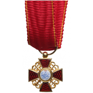 SKU: 1406 The Live Auction begins in: Click here to register for the live Auction Starting price 100 EUR Log in to place a bid. Total bids: 0RUSSIAKnight 's Cross Miniature, instituted in 1735. Breast Badge, 13x12 mm., GOLD, enameled, obverse center missing, original suspension ring, loop and ribbon. IV Shop ID: 69,116Auction LXX - Day 2