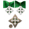 Grand Officer's Set, instituted in 1572. Neck Badge, 58x53 mm, GOLD, both sides enameled, original suspension ring and ribbon. Breast Star, 80 mm., gilt Silver and Silver, superimposed part enameled and gilt, thin pin on reverse, maker's mark "D. Cravanzola & C. - Roma". Superb set, in mint condition! I