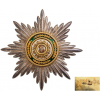 1st Class. Breast Star, 89 mm, in Silver, enameled, hallmarked "84, St. Petersburg, double eagle, star", maker`s mark "KEIBEL, double eagle", central medallion in gilt silver, vertical pin on reverse marked "KEIBEL". A superb star, in mint condition! I