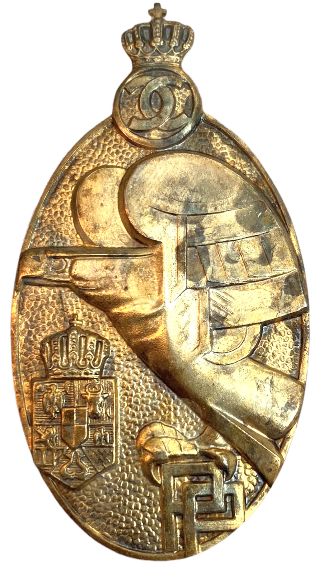 SKU: 1272 The Live Auction begins in: Click here to register for the live Auction Starting price 30 EUR Log in to place a bid. Total bids: 0ROMANIABreast Badge, 67x35 mm, gilt Metal, pin on reverse, I.M.S.P.R. 032. I Shop ID: GE 18Auction LXX - Day 2