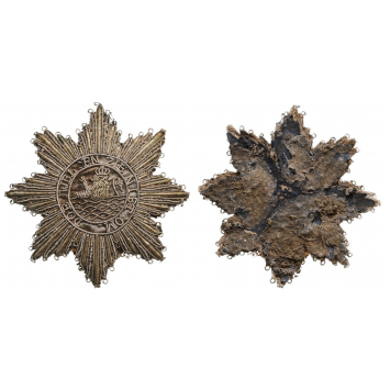 An embroidered Breast Star of the Order, 97 mm, the rays made of Silver thread with tiny loops to af x the star to the habit, round centre depicting a crowned rampant lion rising from waves, within the outer circlet bearing the motto ”DOE WEL EN ZIE NIET OM”, the reverse, with remains of the original, protective, green morocco leather backing.