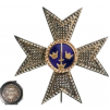 Breast Star of Knight Commander 1st Class, instituted in 1748, 70 mm., a cross of Maltese type, the arms of exquisitely chiseled and pierced silver, centre medallion in gold, with blue enameled field, bearing an upwardly pointing sword in Gold, within Sweden’s “three crowns”, outer circlet of diamond-cut Gold, the reverse fitted with vertical pin and the centre with maker’s escutcheon of Kretly, Paris.
