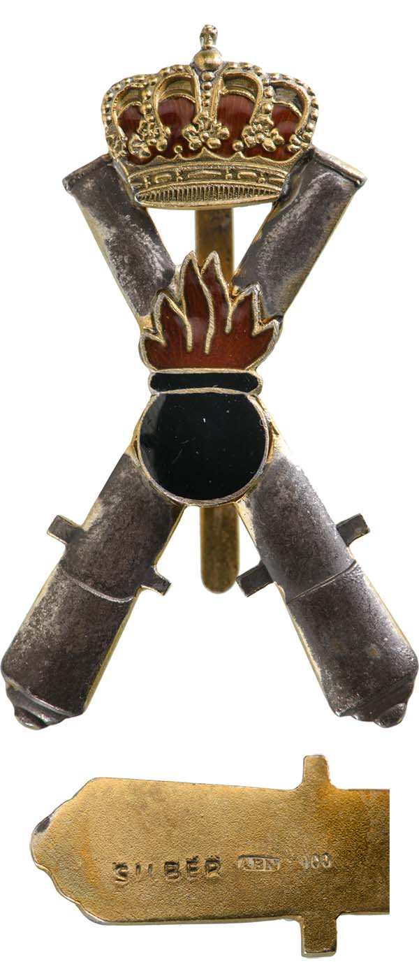 SKU: 1301 Auction has finished. Total bids: 0ROMANIABreast Badge, 50x30 mm, Silver, hallmarked "900-SILBER-ABN", one side partially enameled, vertical pin on the back, M.S.B.R. 196. Very rare! I RR! Shop ID: CX 54
