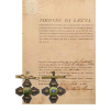 An extremely rare group of the first military award of Brazil’s Empire, of the highest interest for being complete with its proper award document (where the awarded class is also clearly indicated); generally excellent condition, the paper shows its typical signs of the time past.