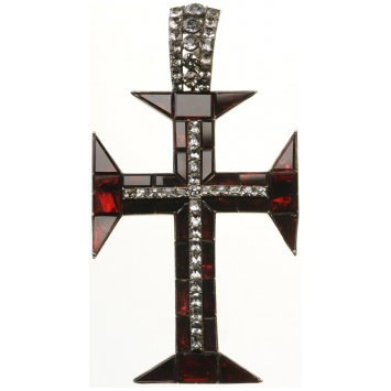 A large, jewelled neck badge of the Order in Silver (light traces of the original gilding), set with ruby-red pastes; centre cross, set with white pastes, same as the outer part of the hinged ribbon-ring; A highly elegant piece, extremely fine condition.