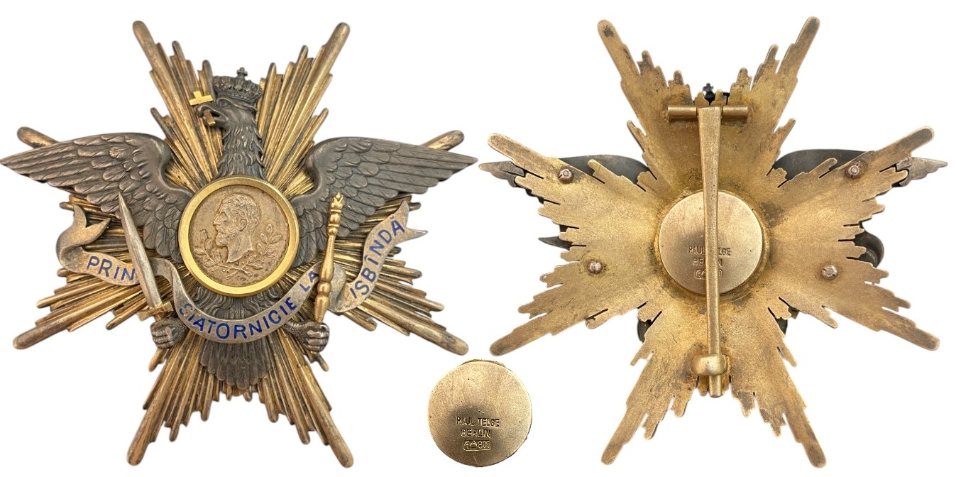 Grand Cross Star 1st Model: Breast Star, 92x88 mm, gilt Silver, maker`s mark "Paul Telge - Berlin", hallmarkde "900", the shape of an 8 rays star, eagle in the centre. Old collection patina, very rareI I RR!