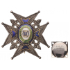 A Commander’s Breast Star in Silver with excellently chiseled and pierces arms with applied inserts in gold and blue enamel; white enameled, oval centre medallion with blue enameled monogram, within applied, green enameled laurel wreath; blue enameled outer circlet; the counter medallion to the reverse, engraved with the maker’s signature of Hamlet, London.