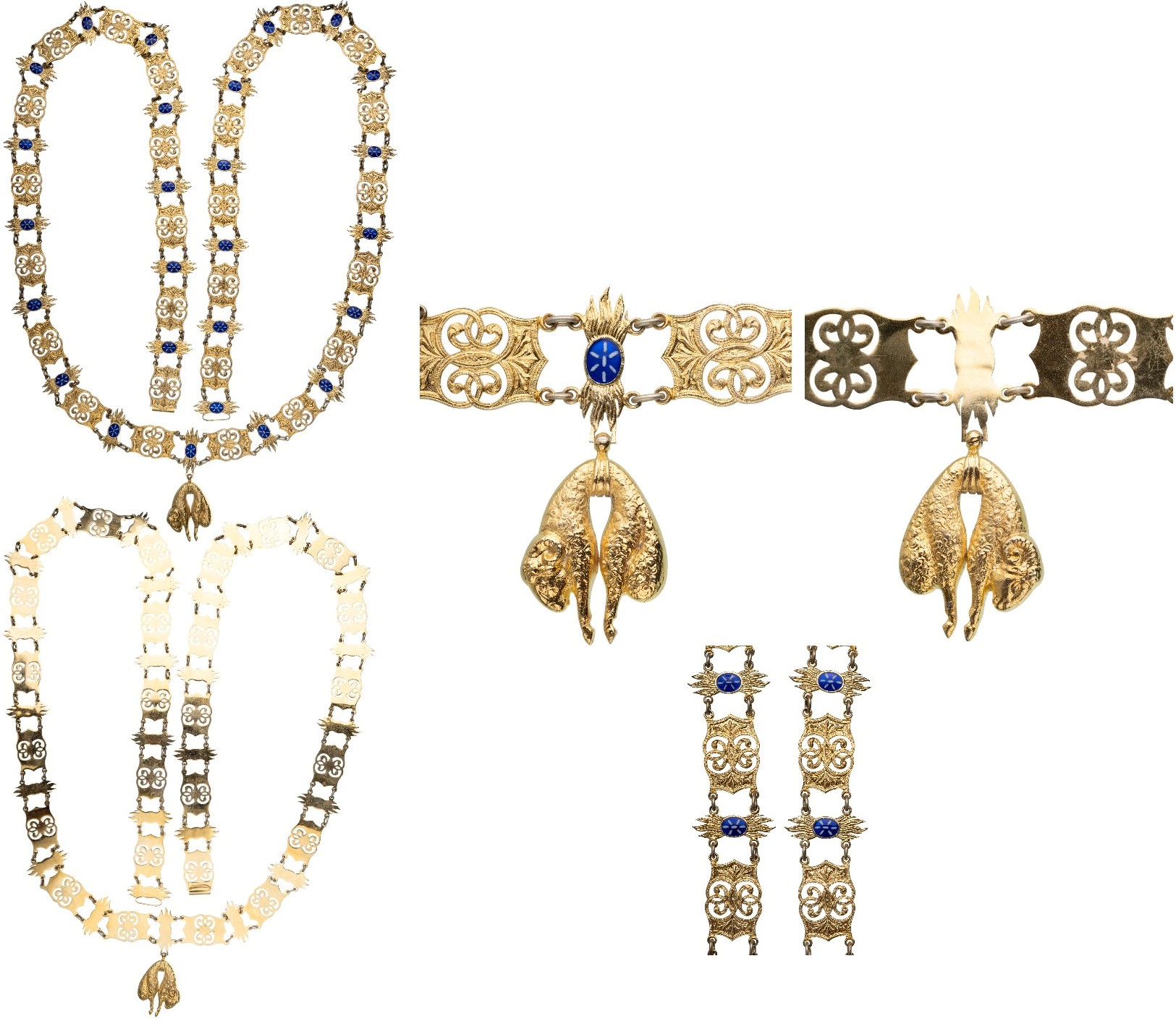 Collar Chain with Collar Badge. Collar Chain with 26 links, 147 cm. and Badge, 47x32 mm., gilt Bronze. Excellent quality and of sumptuous apparence, for replacement or museum's purpose after 1918. Very attractive and spectacular! I