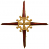 A “Swords’ Cross” in Gold; the blades with trans- lucent red enamel, showing the fine chisel-work; richly elaborated hilts with baroque crossguards and chequered grips, centered to a single, round, polished pommel; the reverese, fitted with golden pin. A beautifully-made piece, from the 1st quarter of 19th Century, excellent condition.