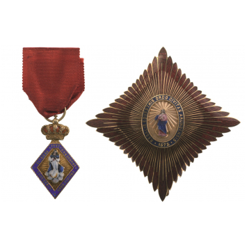 A very rare group, of outstanding quality from the early 20th Century, excellent condition. Dim.: the badge, 45,0 x 26,0 mm., 9 g. aprox.; the star, dia. 90,0 mm., 55 g. I RR!