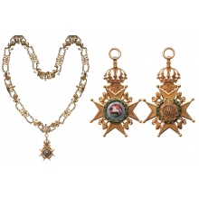 Title Country - Any -AFGHANISTANALGERIAAUSTRIABHUTANBRAZILBRUNEI SULTANATEBULGARIACAMBODIACHILECHINACOLUMBIADENMARKEQUATORIAL GUINEAFRANCEGERMANY - BADENGERMANY - BAVARIAGERMANY - PRUSSIAGREAT BRITAINGREECEHONDURASIceland (Denmark, Kingdom)IRAKIRAN - PERSIAITALYITALY Duchy of MODENAITALY Duchy of PARMAITALY Duchy of Savoy (later, Kingdom of SARDINIA)ITALY Grand Duchy of TuscanyITALY Kingdom of Naples and of the two SiciliesITALY PARMAITALY SardiniaJAPANKOREA People’s RepublicMALAWIMALAYSIAMALTAMEXICONETHERLANDS NAPOLEONiC RULEOMANPARAGUAYPORTUGALPORTUGAL - RUSSIAROMANIARUSSIASERBIA - KINGDOMSLOVAKIASPAINSWEDENTHAILANDTUNISIATURKEYUSAVATICANVENEZUELAZANZIBAR . SKU Order of the Blue Dragon CHINA EUR 25.000 SKU: 32 The Medal of the Phoenix CHINA EUR 12.000 SKU: 33 Cross for the Battle of Cartagena de Indias COLUMBIA EUR 8.500 SKU: 34 The Order of Dannebrog DENMARK EUR 7.500 SKU: 35 National Order of Equatorial Guinea EQUATORIAL GUINEA EUR 3.000 SKU: 36 Order of Independence EQUATORIAL GUINEA EUR 3.000 SKU: 37 Order of the Legion of Honour FRANCE EUR 40.000 SKU: 38 Order of the Legion of Honour FRANCE EUR 3.000 SKU: 39 An outstanding, Honour Badge of Marshal Pétain ma... FRANCE EUR 10.000 SKU: 40 The Order of the Lion of Zähringen GERMANY - BADEN EUR 7.500 SKU: 41 The Miniature Collar of the order of St. Hubert, b... GERMANY - BAVARIA EUR 9.000 SKU: 42 The House Order of St. Hubert GERMANY - BAVARIA EUR 7.500 SKU: 43 The Order Pour le Mérite GERMANY - PRUSSIA EUR 20.000 SKU: 44 Order of the Red Eagle GERMANY - PRUSSIA EUR 20.000 SKU: 45 The Most Noble Order of the Garter GREAT BRITAIN EUR 12.000 SKU: 46 The Most Illustrious Order of St. Patrick GREAT BRITAIN EUR 12.000 SKU: 47 The Most Honourable Order of the Bath GREAT BRITAIN EUR 50.000 SKU: 48 The Most Honourable Order of the Bath GREAT BRITAIN EUR 12.000 SKU: 49 The Most Honourable Order of the Bath GREAT BRITAIN EUR 30.000 SKU: 50 Royal Victorian Order GREAT BRITAIN EUR 30.000 SKU: 51 The Guelphic Order GREAT BRITAIN EUR 25.000 SKU: 52 The Imperial Order of the Crown of India GREAT BRITAIN EUR 35.000 SKU: 53 The Order of the Redeemer GREECE EUR 12.000 SKU: 54 The Order of the Redeemer GREECE EUR 9.000 SKU: 55 The Cross of Valour GREECE EUR 3.000 SKU: 56 Royal Family Order of St. George and Constantine GREECE EUR 6.000 SKU: 57 The Order of the Millennium of the Holy Mount Atho... GREECE EUR 2.000 SKU: 58 Civil Order Jose Cecilio del Valle HONDURAS EUR 3.500 SKU: 59 The Icelandic Order of the Falcon (Hin íslenska fá... Iceland (Denmark, Kingdom) EUR 12.000 SKU: 60 The Order of Rafidain IRAK EUR 7.500 SKU: 61 Pages« first ‹ previous 1 2 3 4 5 6 7 8 next › last »