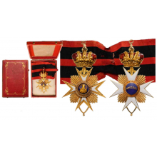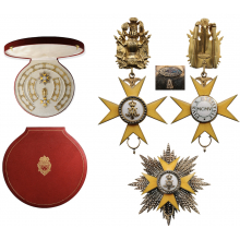 Title Country - Any -AFGHANISTANALGERIAAUSTRIABHUTANBRAZILBRUNEI SULTANATEBULGARIACAMBODIACHILECHINACOLUMBIADENMARKEQUATORIAL GUINEAFRANCEGERMANY - BADENGERMANY - BAVARIAGERMANY - PRUSSIAGREAT BRITAINGREECEHONDURASIceland (Denmark, Kingdom)IRAKIRAN - PERSIAITALYITALY Duchy of MODENAITALY Duchy of PARMAITALY Duchy of Savoy (later, Kingdom of SARDINIA)ITALY Grand Duchy of TuscanyITALY Kingdom of Naples and of the two SiciliesITALY PARMAITALY SardiniaJAPANKOREA People’s RepublicMALAWIMALAYSIAMALTAMEXICONETHERLANDS NAPOLEONiC RULEOMANPARAGUAYPORTUGALPORTUGAL - RUSSIAROMANIARUSSIASERBIA - KINGDOMSLOVAKIASPAINSWEDENTHAILANDTUNISIATURKEYUSAVATICANVENEZUELAZANZIBAR . SKU King Bhumibol Adulyadej’s (Rama IX) Royal Cypher M... THAILAND EUR 6.000 SKU: 211 The Order of Glory (Nishan al-Iftikhar) TUNISIA EUR 600 SKU: 212 The Order of Glory (Nishan al-Iftikhar) TUNISIA EUR 9.000 SKU: 213 The Unique, jewelled Breast Star of the Order of t... TURKEY EUR 5.000 SKU: 214 The Order of Privilege (Nişân-ı Imtiyâz) TURKEY EUR 20.000 SKU: 215 Order of Mecîdî TURKEY EUR 18.000 SKU: 216 Order of Mecîdî TURKEY EUR 1.000 SKU: 217 The Cincinnati Eagle USA EUR 7.500 SKU: 218 Order of the Golden Spur VATICAN EUR 9.000 SKU: 219 Order of St. Silvester and the Golden Spur VATICAN EUR 7.500 SKU: 220 Order of St. Silvester and the Golden Spur VATICAN EUR 15.000 SKU: 221 Order of the Holy Sepulchre VATICAN EUR 7.500 SKU: 222 Order of Andres Bello VENEZUELA EUR 3.000 SKU: 223 Presidential Order of Zanibar Nishani Raisi ZANZIBAR EUR 8.000 SKU: 224 Pages« first ‹ previous 1 2 3 4 5 6 7 8