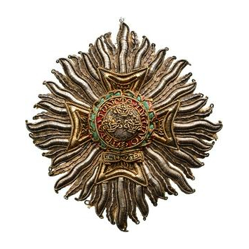 An Early, embroidered Grand Cross Breast Star of the Military Division (from 1815), 110x98 mm, the rays made of rich silver broderies, paillettes and wires, small loops to the tips, the centre in gilt-silver wires and poly chrome embroidered centre medallion, the reverse with original paper backing (minor losses). An important, visibly worn piece, in extremely fine condition.The Order of the Bath, instituted in 1725, to reward the merits towards the Crown of both civil and military, by order of the George, Prince Regent, was divided into two different division to better signify the appreciation of the Sovereign towards the merits shown in the campaigns against Napoleon: "to the end that those Officers who have had the opportunities of signalizing themselves by eminent services during the late war may share in the honours of the said Order, and that their names may be delivered down to remote posterity, accompanied by the marks of distinction which they have so nobly earned." (The London Gazette, n. 16972, pages 17-20). II RR!
